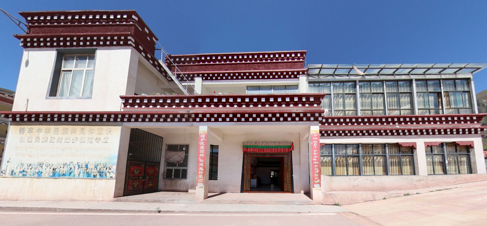 为深入贯彻新时代党的治藏方略,推进藏传佛教中国化,烟多寺铸牢中华民族共同体意识教育基地于2022年启动建设,并于2023年3月正式挂牌成立。基地建筑面积30余平方米,总计投入20万余元,虽空间精炼,但内涵深厚、主题鲜明。